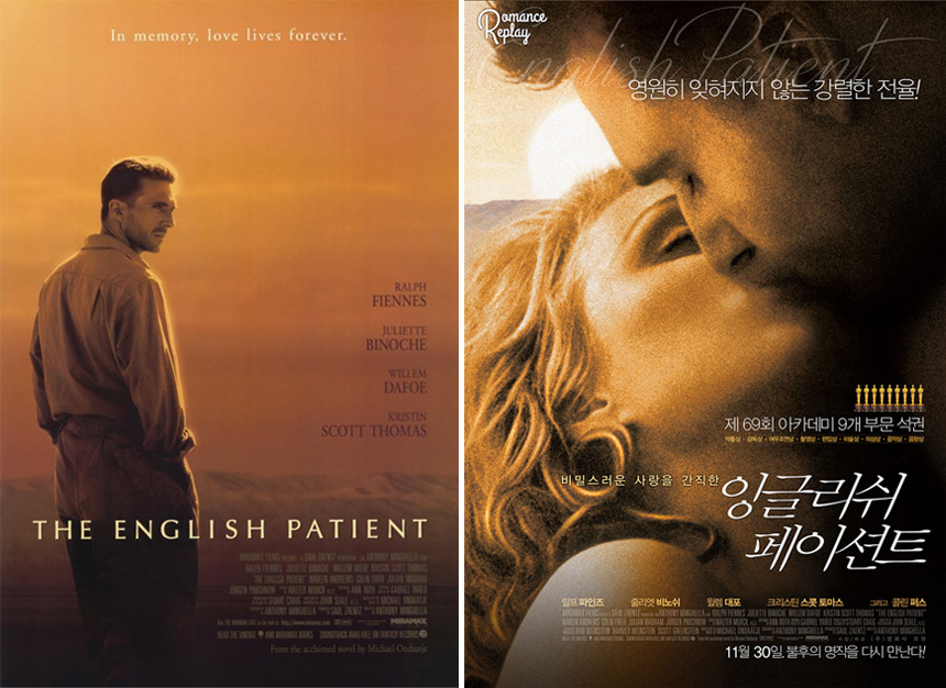 마이클 온다체가 쓴 동명의 소설을 바탕으로 한 작품. 2차 세계대전이 종전될 무렵, 극심한 화상을 입은 한 영국인 환자가 들려주는 서사시다. 북부 이태리의 한 수도원, 심한 부상으로 얼굴도 국적도 확인할 수 없어 '잉글리쉬 페이션트'라 불리는 한 남자가 있다. 몸 상태가 점점 더 악화되어가자 그는 헌신적으로 간호해주는 간호사 ‘한나’에게 자신의 과거를 들려주기 시작한다. 가슴 아픈 사랑의 기억, 그녀를 지키기 위해 해야만 했던 선택, 전쟁의 포화 속에 추락해버린 비행기. 아름답고 멋진 장면과 감동적인 대사가 감성을 자극하는 불후의 명작.