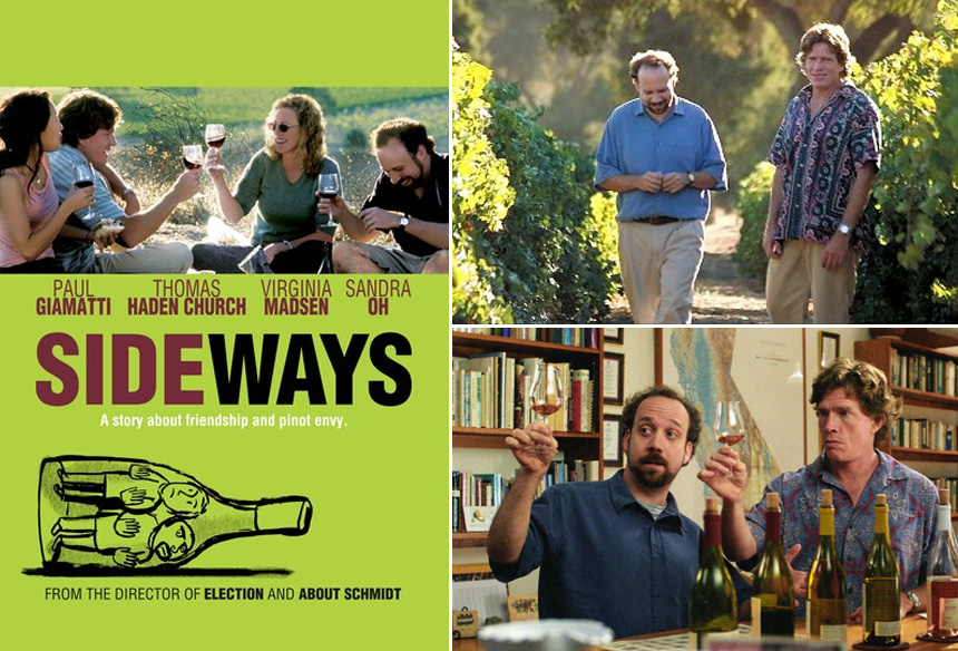 렉스 피킷이 쓴 동명 소설을 각색한 작품으로 산타 바바라 지대의 와인농장을 여행하는 이야기다. 중년의 영어 교사 마일즈는 우울함을 와인으로 달래는 남자다. 그의 단짝친구 잭의 결혼을 앞두고 총각파티를 겸해 와인 여행을 떠난 두 사람. 여행지에서 마일즈는 전부터 알고 지내던 아름다운 웨이트리스 마야와 재회해 행복한 시간을 갖게 되고, 선천적인 바람둥이 잭은 총각시절의 마지막 자유를 만끽하고자 한다. 그러나 와인의 즐거운 시음도 뜨거운 데이트도 기대했던 대로 흘러가는 것만은 아니었다. 제77회 아카데미상에서 각색상을 수상했다.