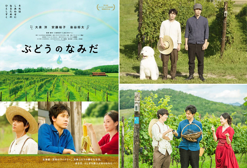 와이너리 영화가 꼭 유럽이나 미국에만 있으라는 법은 없다. 일본영화 <포도의 눈물>은 아름다운 홋카이도의 작은 시골 마을 소라치를 무대로 인생의 희로애락을 그리고 있다. 형 ‘아오’와 동생 ‘로쿠’는 아버지가 남긴 밀밭과 포도나무로 농사를 짓고 있었다. 포도를 재배하는 형 아오는 와인을 양조하고, 밀을 재배하는 동생 로쿠는 빵을 굽는 평화롭고 심플한 일상을 보내던 어느 날, 정체불명의 여인 ‘에리카’가 캠핑카를 타고 그들 농장 옆에 나타난다. 모두들 그녀의 활기차고 신비로운 매력에 빠져드는 가운데 형제의 잔잔한 일상에도 변화가 찾아든다.