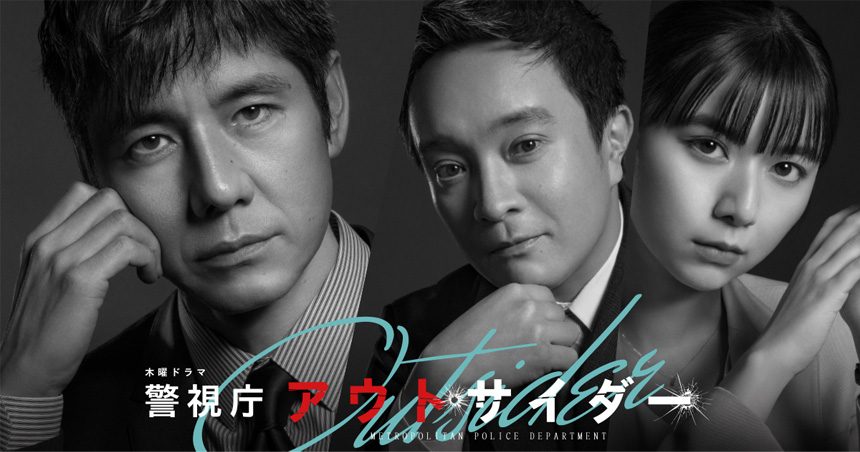 3개의 정의, 그리고 각자의 비밀. 니시지마 히데토시, 하마다 가쿠, 카미라이시 모카가 중심 트리오를 이루는 드라마 <경시청 아웃사이더>는 지금까지의 수사드라마와는 조금 다른 결을 보인다. 형사드라마라면 유능한 실력자나 수사현장에 앞장서는 열혈형사가 있게 마련이지만 여기서의 주요 인물은 모두 다른 의미에서 아웃사이더인 것이다. 폭력전담반 시절 버릇을 못 버리는 아재 형사를 니시지마 히데토시가, 깊은 비밀을 감춘 에이스 형사를 하마다 가쿠가, 현장에서 일할 마음이 없는 신참 형사를 카미라이시 모카가 맡아, 신선한 합을 맞춘다. 묻어둔 상처도, 형사가 된 이유도 제각각 다르지만, 서로를 교묘히 이용하며 자신이 이루고 싶은 정의를 향해 나아간다. 진지함과 유머를 적절히 섞어 스피디하게 전개되는 이 작품의 원작은 <메종 드 폴리스>의 작가 카토 미아키의 동명소설로 결국에는 거대 악과 맞서게 되는 세 사람을 색다른 접근으로 그리고 있다.