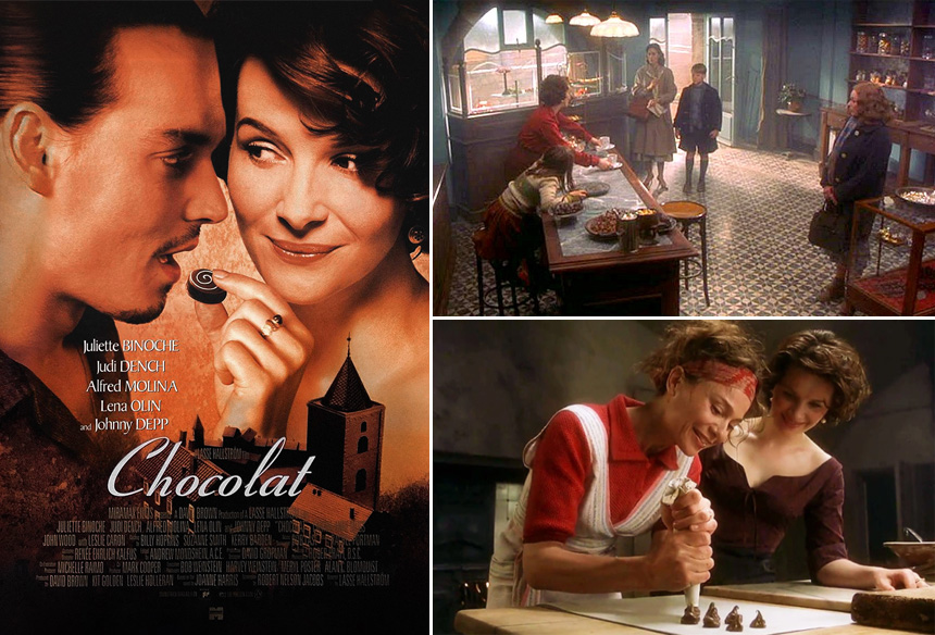 라세 할스트룀Lasse Hallström 감독의 작품으로 조안 해리스Joanne Harris의 로맨스소설을 원작으로 한다. 프랑스의 한 시골 마을에서 엄격하고 금욕적인 생활을 하던 사람들이 아름답고 신비한 여인 비엔의 초콜릿으로 인해 기쁨과 관능의 즐거움에 눈을 뜬다는 스토리다. 백 년 동안 아무 것도 변한 것이 없는 작은 마을에 딸과 함께 마을을 떠돌며 상처 입은 사람들의 마음을 치유하는 비엔이 도착한다. 처음에는 그녀의 초콜릿가게를 외면하던 마을사람들은 하나둘씩 마법 같은 경험을 하고 결국 누구나 비엔을 좋아하며 따르게 되지만, 마을의 시장은 그녀를 쫓아내려 한다. 원작소설은 베스트셀러가 되며 이후 시리즈가 몇 편 이어지기도 했다.