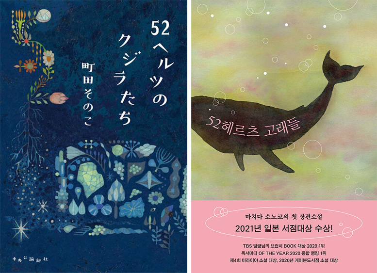 52헤르츠의 고래란 다른 고래가 알아들을 수 없는 높은 주파수로 우는 세상에서 한 마리뿐인 고래. 아무데도 닿지 않고, 아무것도 전달되지 않는다. 그래서 세상에서 가장 외롭다고 한다. 일본 규슈의 한적한 바닷가 마을. 모든 것을 버리고 그곳으로 홀로 이사 온 ‘키코’는 어느 비 오는 날 자신처럼 외로움의 냄새가 나는 한 아이를 만난다. 자신의 인생을 가족에게 착취당해 온 여성과 어머니에게 학대당하며 ‘벌레’라고 불리는 소년. “나는 아무도 듣지 못하는 너의 52헤르츠 소리를 들을게.” 가족으로부터 학대받은, 그리고 학대받고 있는 두 사람이 만나 두려움을 딛고 한 걸음 한 걸음 앞을 향해 나아가는 이야기. 가족에게 배신당해 온 그들이 만났을 때 새로운 영혼의 이야기가 태어난다. 2024년 동명의 영화로도 개봉되었다.