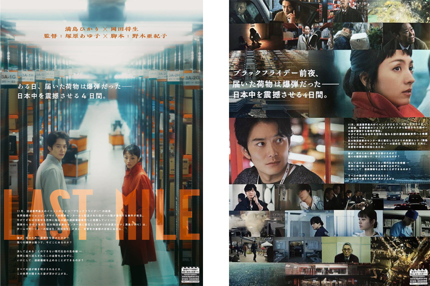 무더운 여름의 지루함을 시원하게 날려줄 논스톱 서스펜스 엔터테인먼트 영화 <라스트마일>. 세계적인 거대 쇼핑 사이트를 소재로, 편리한 문명이기는 하지만 한편으로 악용되기 쉬운 인터넷이나 유통 시스템의 이면을 비추고 있다. 법의학 미스터리 드라마 「언내추럴」, 형사드라마 「MIU404」의 감독 츠카하라 아유코塚原あゆ子와 각본가 노기 아키코野木亜紀子가 다시 의기투합한 오리지널 스토리다. 위의 두 드라마는 치밀한 스토리 전개로 화를 거듭할수록 인기가 급상승했던 만큼 이들 작품의 세계가 어떻게 이어져 나갈는지도 기대가 된다. 수많은 택배회사들이 열심히 짐을 배달하는 거대한 유통 시스템이 만약 폭탄이라는 살상무기에 위협을 받는다면? 생각만으로도 아찔해지는 공포의 현장을 긴장감 넘치게 그린다.